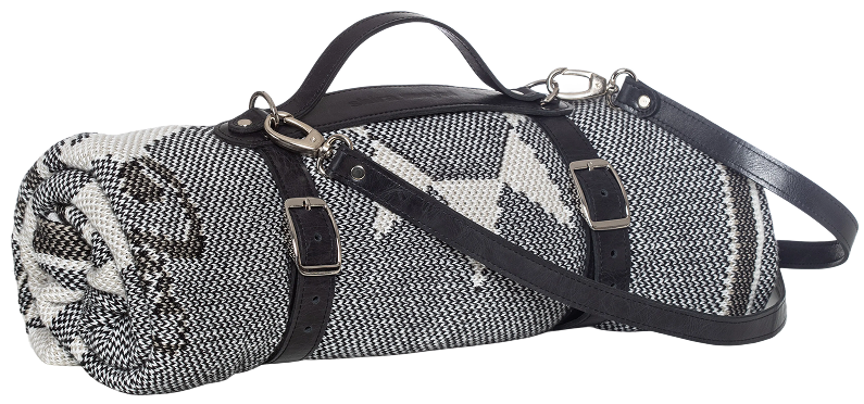 Blanket 240×180 cm — 100% natural wool/cotton yarns, with a genuine leather carry bag made from reclaimed leather offcuts I sourced from factories and upcycled.